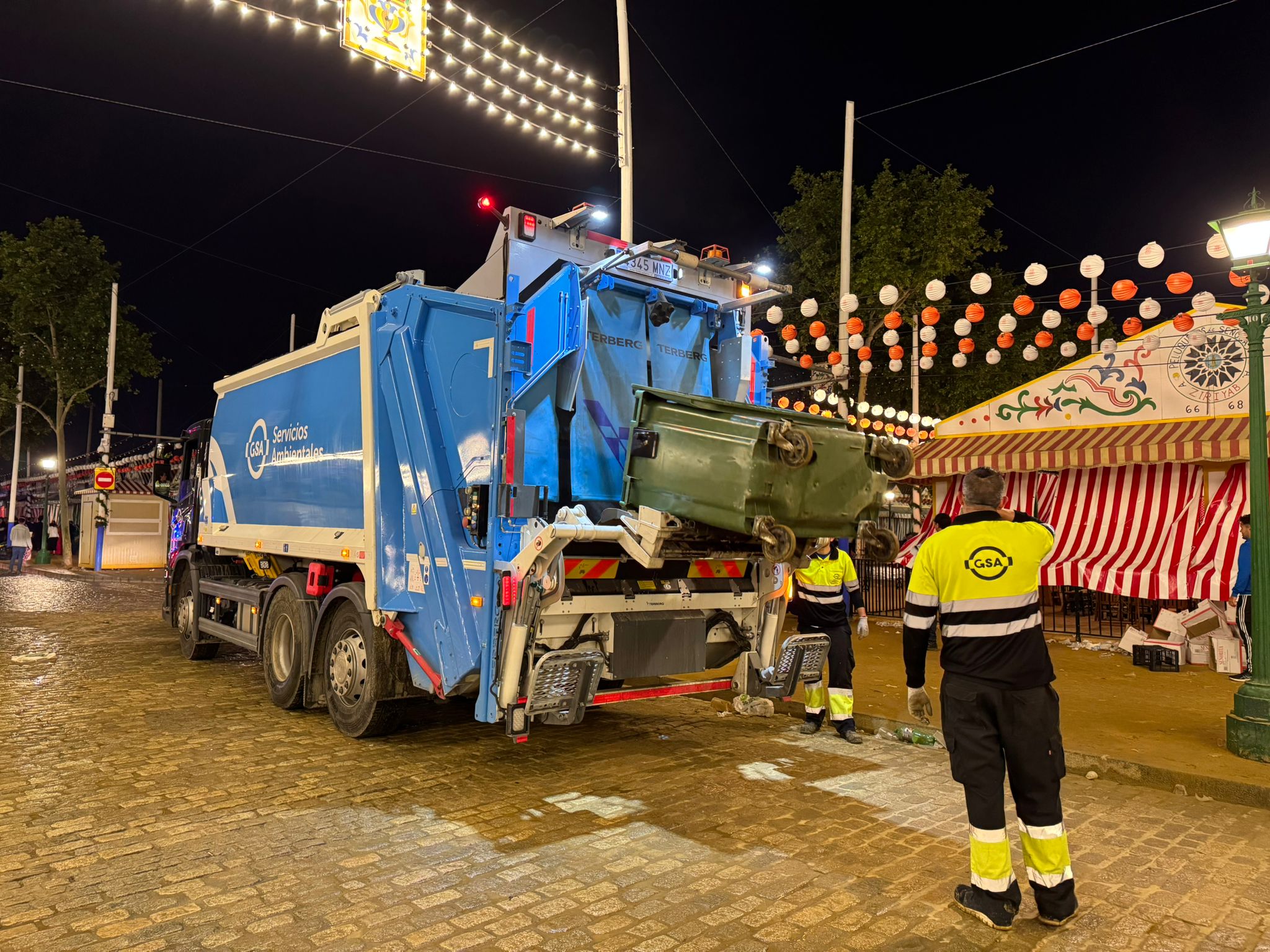 La empresa ha movilizado una treintena de operarios y ocho camiones cada noche para lograr que sevillanos y visitantes disfruten de una feria segura y respetuosa con el medioambiente.